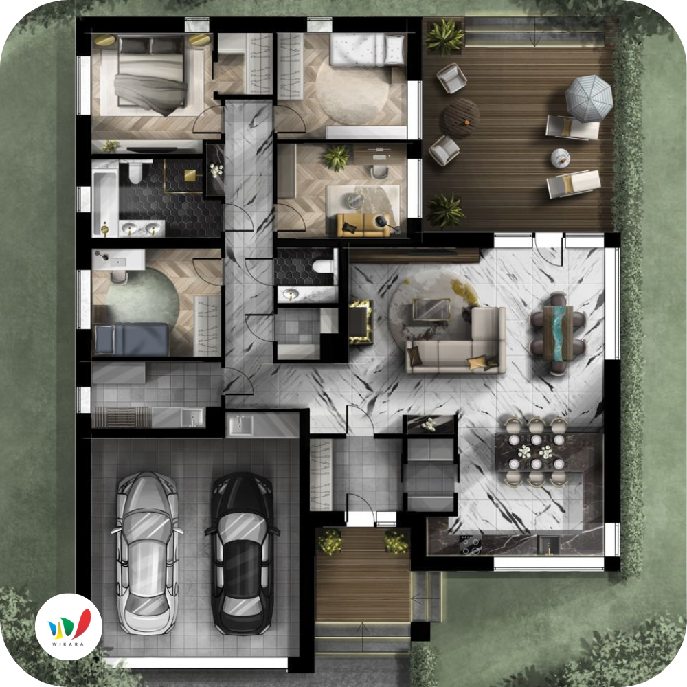• Berbagai gaya desain yang diinginkan. Kami bisa memberikan masukan berbagai jenis gaya bangunan, dari klasik, minimalis modern, industrial, kontemporer, desain Bali, dan sebagainya.